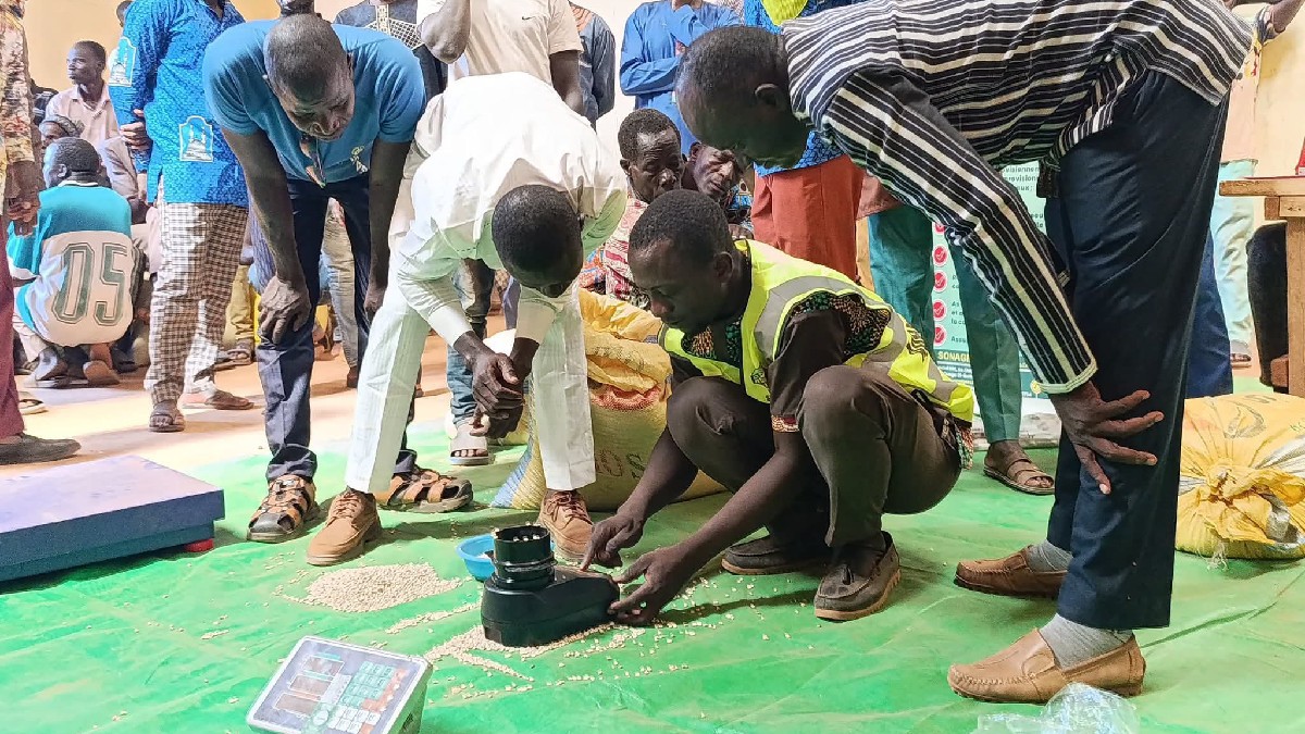 Ils étaient nombreux, les producteurs venus sur le site d’entreposage de la SONAGESS à Kalsaka, pour vendre leurs récoltes. Pour cette première phase, le niébé a été mis à l’honneur, avec un objectif de 3 000 tonnes à collecter dans la commune. C’est Bani Rachidata qui a l’honneur d’ouvrir le bal des ventes. Son sac de niébé, après pesage, affiche 91,6 kg à la bascule.