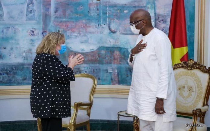 Le président du Faso Roch Marc Christian Kaboré a reçu ce matin, la Représentante spéciale de l’Union européenne pour le Sahel, Emanuela Del Re. Elle est venue échanger avec le président du Faso sur la question sécuritaire, en vue de mieux comprendre la situation au Burkina Faso et dans la sous-région. « Le but de cette visite est qu’on a besoin de parler, de discuter de choses, de mieux comprendre la situation, et rencontrer un homme comme le président Kaboré, un homme de vision, c’est vraiment très important pour nous », a déclaré Emanuela Del Re, à sa sortie d’audience.