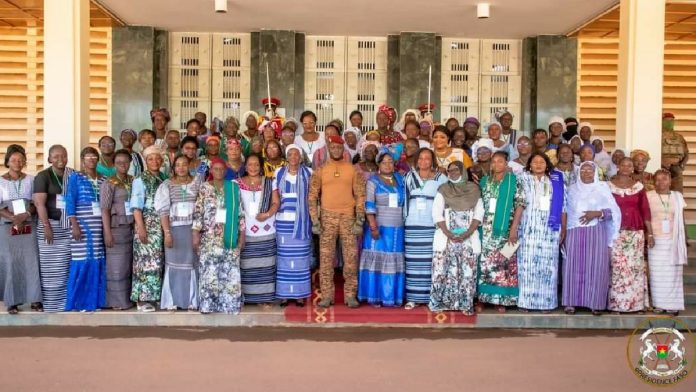 « Contribution de la femme à l’effort de sécurité, de paix et de cohésion sociale au Burkina Faso », c’est autour de cette préoccupation que les coordinations des femmes du Burkina Faso se sont entretenues avec le Président de la Transition, le Capitaine Ibrahim TRAORE. Selon le ministre de la Solidarité, de l’Action humanitaire, de la Réconciliation nationale, du Genre et de la Famille, Mme Nandy Somé/Diallo, les femmes du Burkina veulent à travers cette rencontre avec le Chef de l’Etat, lui témoigner leur reconnaissance pour sa détermination « sans faille à combattre les groupes armés terroristes, à libérer notre territoire et à réinstaller les personnes déplacées dans leurs villages ».