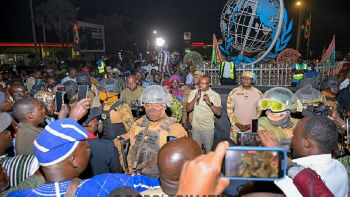 Le 31 décembre 2024, le Premier ministre Rimtalba Jean Emmanuel Ouédraogo, accompagné de plusieurs ministres, a rendu visite aux groupes de veille citoyenne, présents au rond-point des Nations unies, à Ouagadougou.