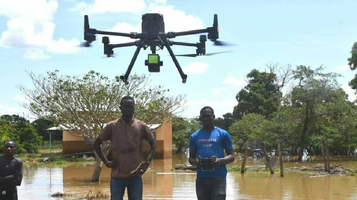 L’IGB exécute des travaux d’imagerie aérienne en aval et en amont du pont pour comprendre les principales causes des inondations recurrentes au niveau du pont de Hèrèdougou.