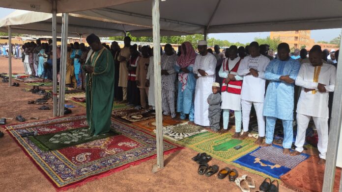 Des centaines de fidèles musulmans vêtus de leurs plus beaux habits de fête ont convergé vers l’Université Joseph Ki-Zerbo, ce vendredi 6 juin 2025 à Ouagadougou, pour la prière solennelle de la Tabaski. A cette célébration religieuse, l’imam Marboulaye Nombré a fait un plaidoyer pour la cohésion nationale et la résilience face à l’adversité. La prière a été organisée par le Cercle d’Études, de Recherches et de Formation Islamiques (CERFI) et l’Association des Élèves et Étudiants Musulmans du Burkina (AEEMB).