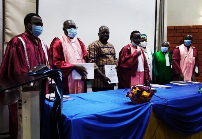« Insectes d’intérêt médico-légal au Burkina Faso. Perspections, diversité saisonnière et élément de biologie de Dermestes maculatus De Geer, 1774 », tel fut le thème de la thèse de l’impétrant Kientega. Après 5 années de recherche sur le domaine de l’entomologie, Honoré Kientega était face à un jury constitué d’éminents professeurs d’université et de chercheurs spécialistes de la biologie appliquée. Ce jury était présidé par le professeur Wendengoudi Guenda.