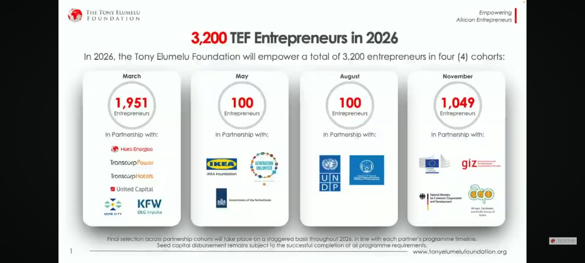 Lancée en 2015 avec un engagement initial de 100 millions de dollars pour soutenir 10 000 entrepreneurs sur dix ans, la Fondation Tony Elumelu s’est imposée comme l’un des plus importants programmes philanthropiques dédiés à l’entrepreneuriat en Afrique. Depuis, elle revendique des dizaines de milliers de bénéficiaires, avec un impact significatif en matière de création d’emplois et de richesse.