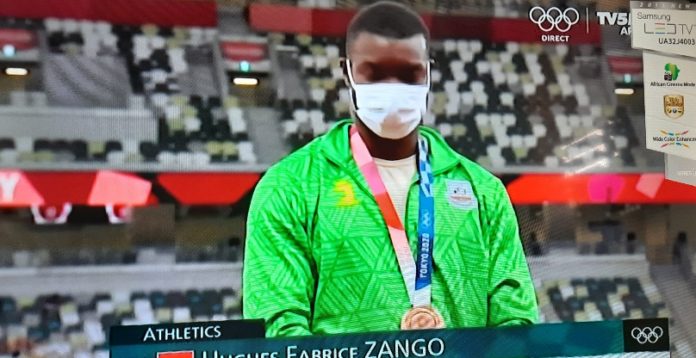 L’athlète burkinabè Hugues Fabrice Zango a remporté la médaille de bronze au Triple-saut hommes des jeux olympiques Tokyo 2020, ce 5 août 2021 avec un saut de 17,47m.