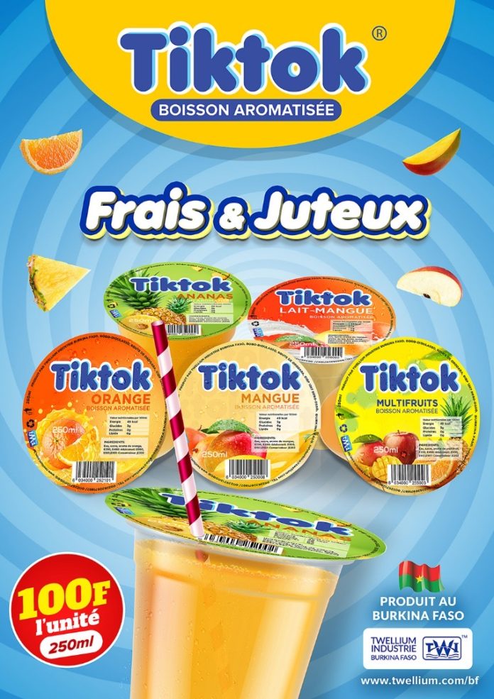 TIKTOK est un jus de fruit produit par TWELLIUM INDUSTRIE BURKINA FASO,