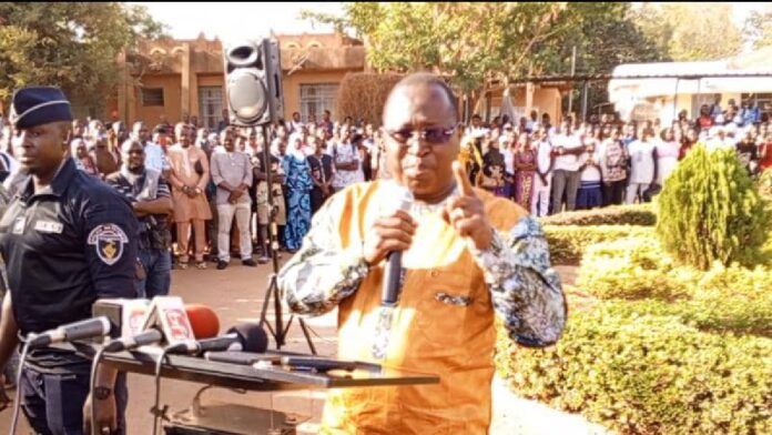 Dans une atmosphère empreinte de solennité et de fierté, l’Université Joseph Ki-Zerbo (UJKZ) a accueilli, dans la matinée de ce lundi 12 mai 2025, la cérémonie mensuelle de montée des couleurs. Placée sous la présidence du ministre en charge de l’Enseignement supérieur, le Pr Adjima Thiombiano, cette cérémonie a mobilisé personnel enseignant, personnel administratif, technique et athos, ainsi que des étudiants de l’université. Tous ont, d’une seule voix, réaffirmé leur attachement à la patrie et aux valeurs républicaines. C’était l’occasion pour le ministre d’afficher sa politique d’une « tolérance zéro » pour les actes d’indiscipline dans les universités du Burkina Faso.