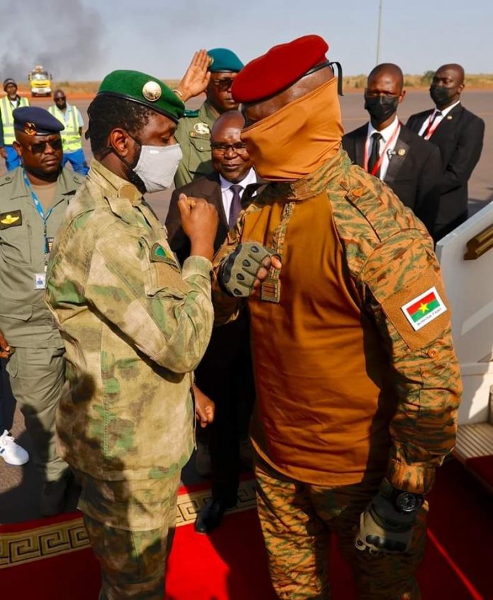 Le capitaine Ibrahim Traoré, président de la transition du Burkina Faso a eu un tête à tête avec son homologue malien, Assimi Goïta ce mercredi 2 novembre 2022 à Bamako. Il a été accueilli à Bamako par le colonel Goïta.
