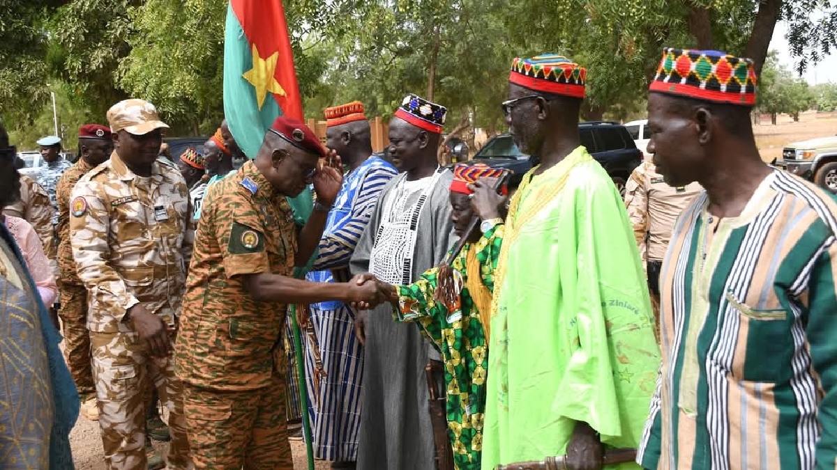 En marge des échanges avec la Troupe, la délégation, accompagnée des autorités régionales avec à leur tête Madame Sy Assetou Barry/Traoré, Gouverneur de la région de Oubri, a rendu une visite de courtoisie au Chef coutumier de Ziniaré, le Naaba Sanem. Le garant de la tradition a réitéré son soutien indéfectible à la lutte pour la souveraineté et a formulé des bénédictions pour la victoire des forces combattantes face aux forces obscures.